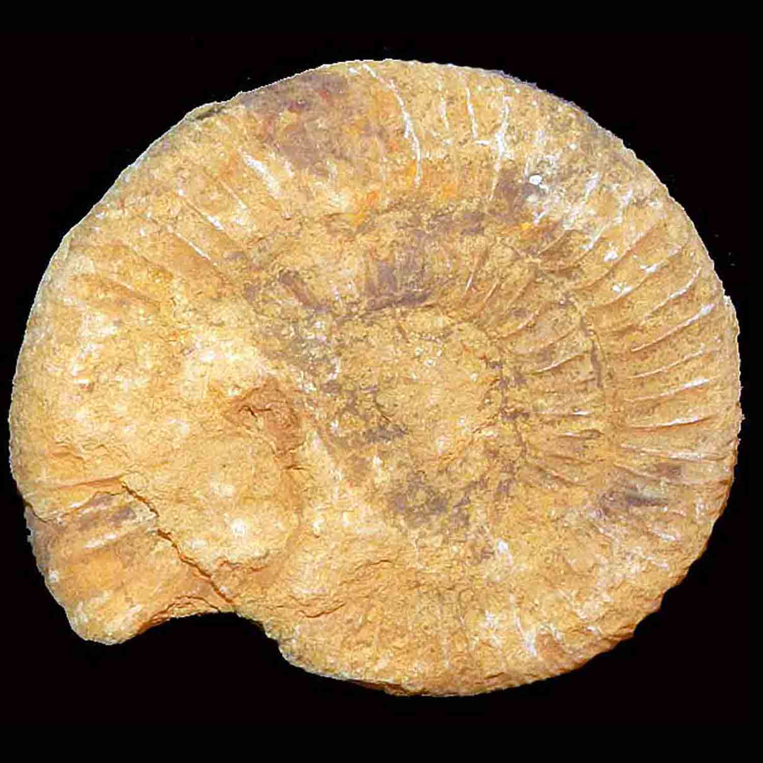 Campione fossile molto gradevole di Ammonite del Giurassico superiore del Madagascar, reperto rappresentativo da collezione di ottima qualità, con evidenti dettagli anteriori e posteriori delle numerose coste ornamentali spigolose ben conservati.