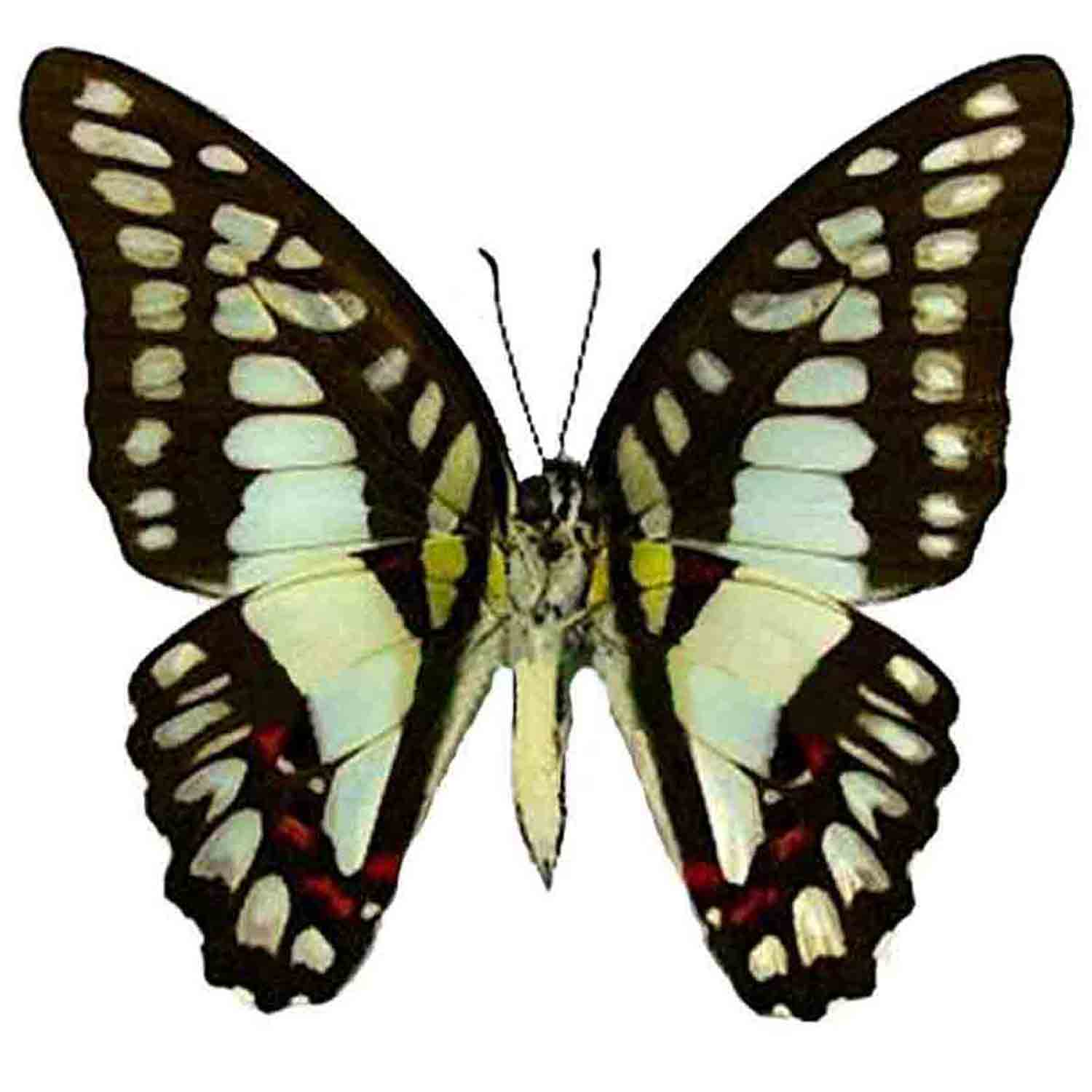 Graphium eurypylus gordion Papilio one wing lenght cm 3.5-4 Insect Tropical Butterfly Papilionidae Swallowtail. Also available in lots of 5 pcs, at this link. Common name: The Great Jay or Pale Green Triangle. Syn. Papilio eurypylus, Chlorisses harrietta, Semicaudati kochianus, Zetides euryplus, Arisbe eurypelus, Eurypleana eurypylus Graphium eurypylus (Linnaeus, 1758), is a species of tropical butterfly belongs to the Papilionidae family. The name probably derives from Eurypylus, a Thessaly king who lead the Thessalians during the Trojan War. This species can be found in the Australasia ecozone and Indomalaya (Northeast India, Southeast Asia and Australia). It has a wingspan of up to about 7-8 centimeters (2.8 to 3.1 in). The larvae feed mainly on various species of the Annonaceae family, as well as Magnoliaceae and Sapindaceae. 20 subspecies are known.