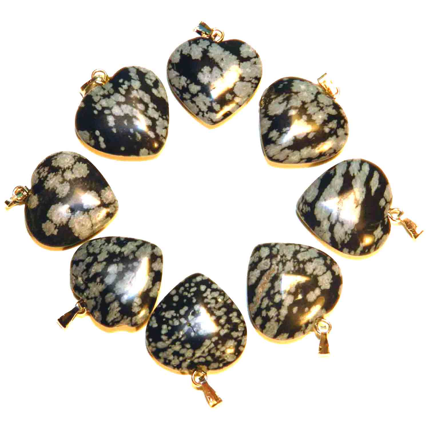 Ossidiana Fiocco Neve Ciondolo a Cuore Bigiotteria Gioielli Collane Pendenti Pietre Dure Burattate Minerali Lavorati Cristalloterapia