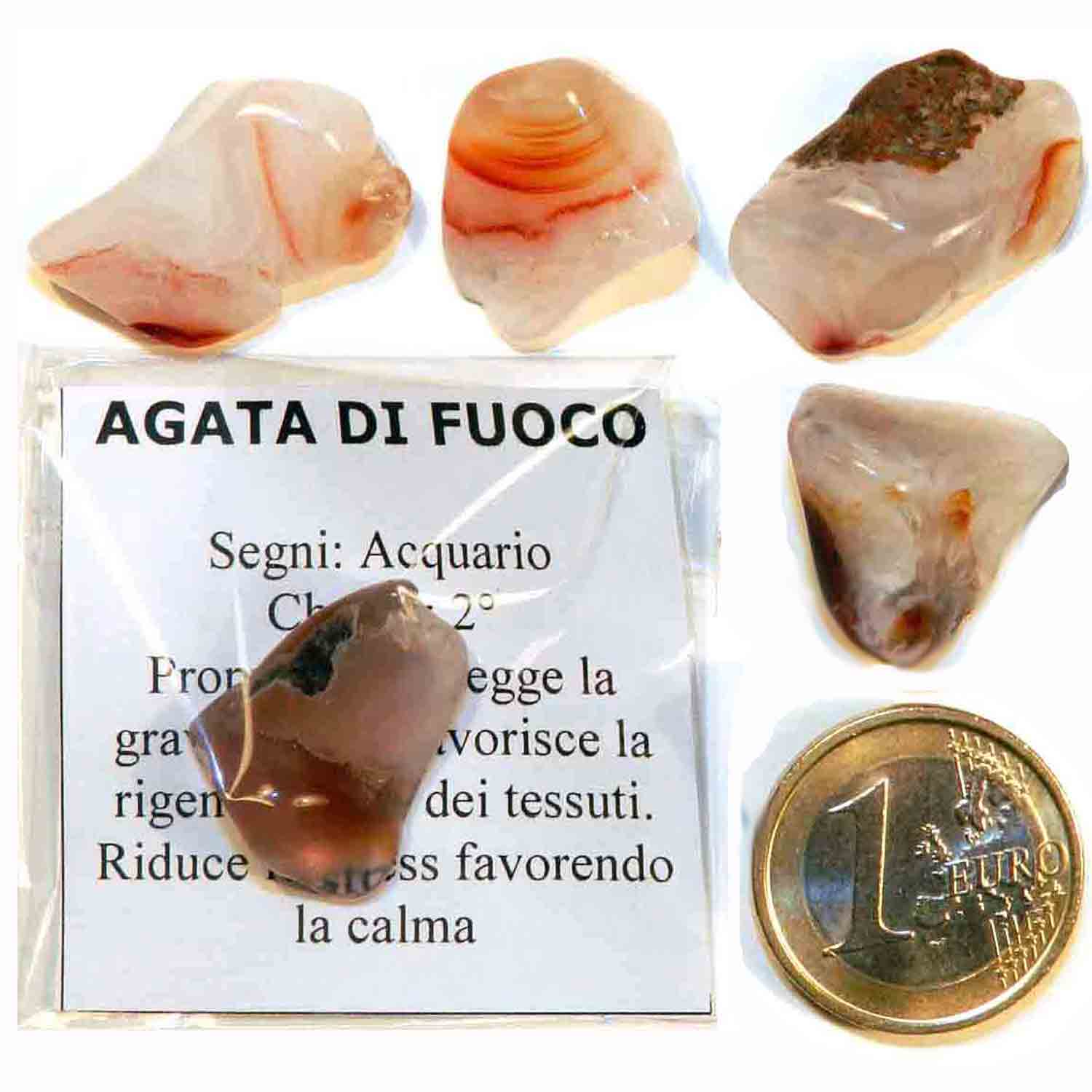 Agata di Fuoco un Pezzo 4-6 gr - cm 1,5-2,5 Pietre Dure Burattate Minerali Lavorati Cristalloterapia, confezionato con piccola scheda descrittiva, come in foto.