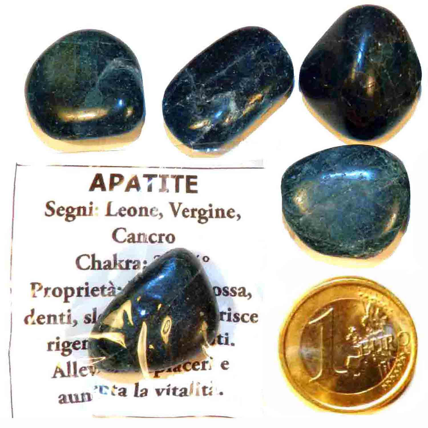 Utile per tutti i problemi a carico di ossa, cartilagini, tendini e denti, osteoporosi, artrosi lombare e cervicale, nelle slogature e favorisce la rigenerazione dei tessuti. Rafforza la capacità organizzativa, allevia i dispiaceri e aumenta la vitalità. Deriva dal greco apatào = ingannare, per la sua somiglianza con altre pietre.