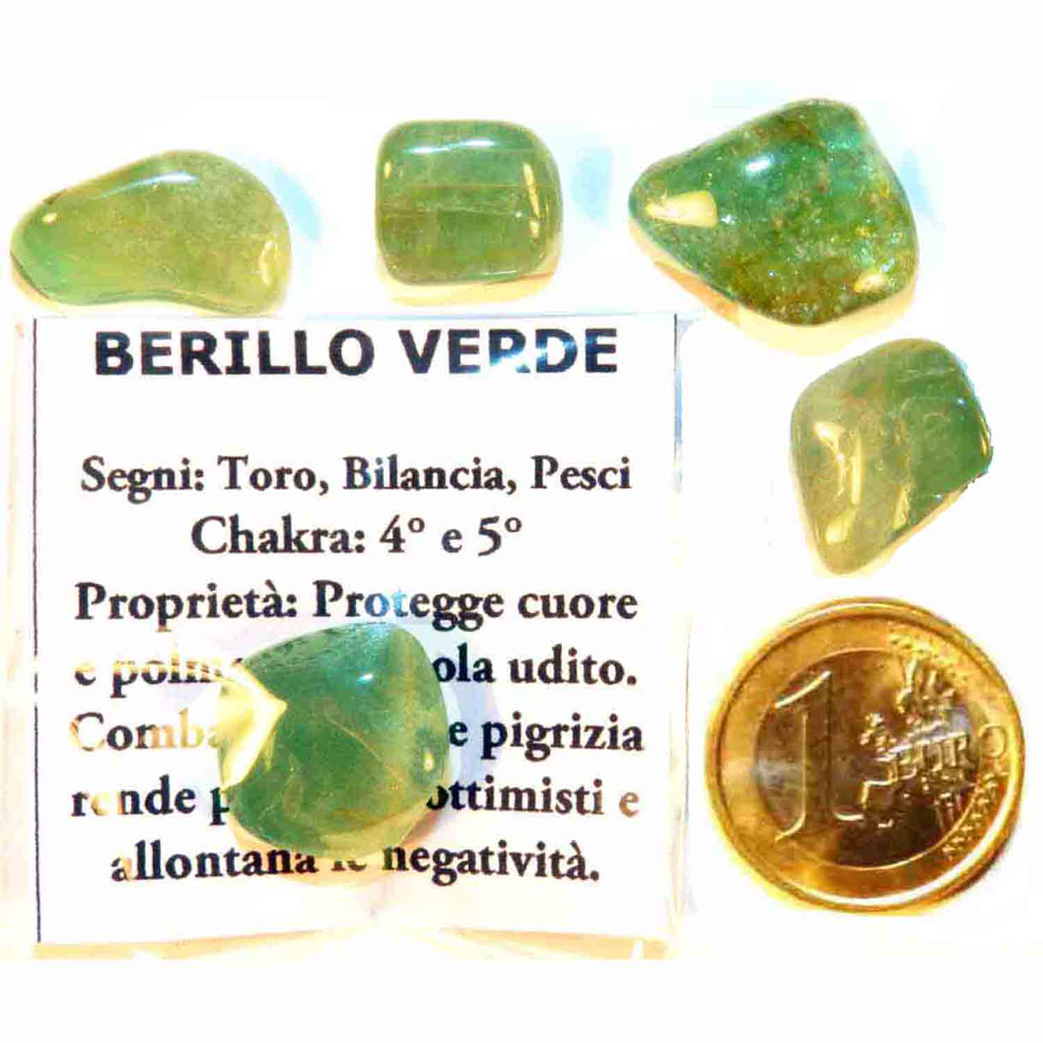 Berillo Verde un Pezzo Small 2-3 gr - cm 1,5-2 Pietre Dure Burattate Minerali Lavorati Cristalloterapia, confezionato con piccola scheda descrittiva, come in foto.