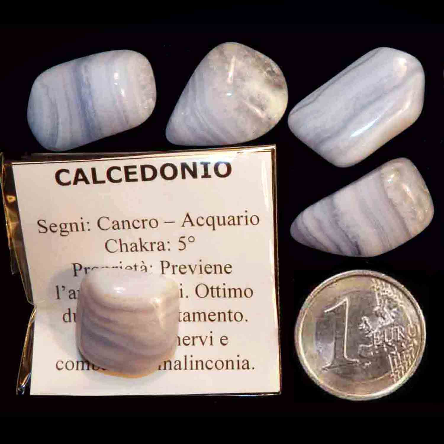 Calcedonio un Pezzo Medium 4-6 gr - cm 1,5-2,5 Pietre Dure Burattate Minerali Lavorati Cristalloterapia, confezionato con piccola scheda descrittiva, come in foto.