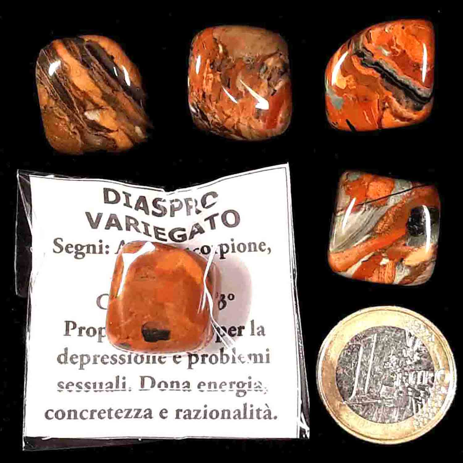 Diaspro Variegato un Pezzo 9-11 gr - cm 1,5-2 Pietre Dure Burattate Minerali Lavorati Cristalloterapia, confezionato con piccola scheda descrittiva, come in foto.