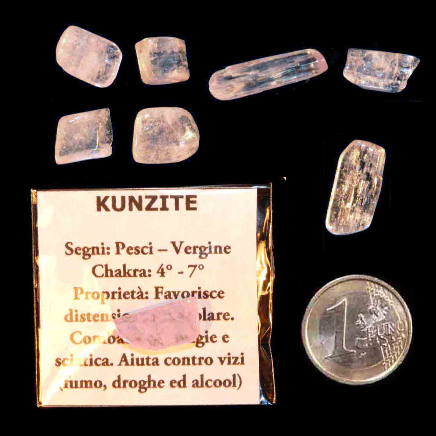 Kunzite un Pezzo 7-9 gr - cm 1,5-2 Cristalli Pietre Dure Burattate Minerali Lavorati Cristalloterapia, confezionato con piccola scheda descrittiva, come in foto.