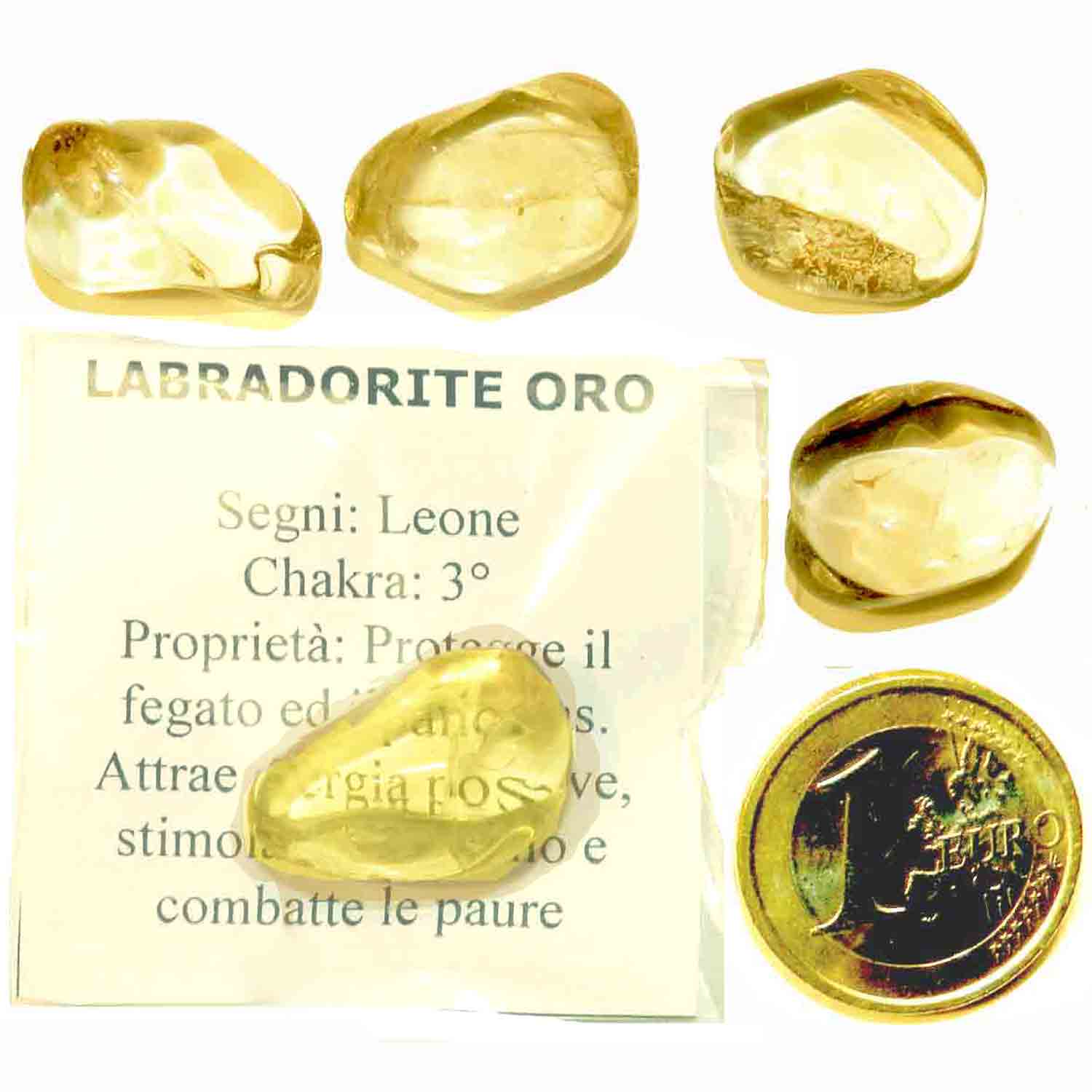 Labradorite Oro o Dorata un Pezzo 3-4 gr - cm 1,5-2 Pietre Dure Burattate Minerali Lavorati Cristalloterapia, confezionato con piccola scheda descrittiva, come in foto.