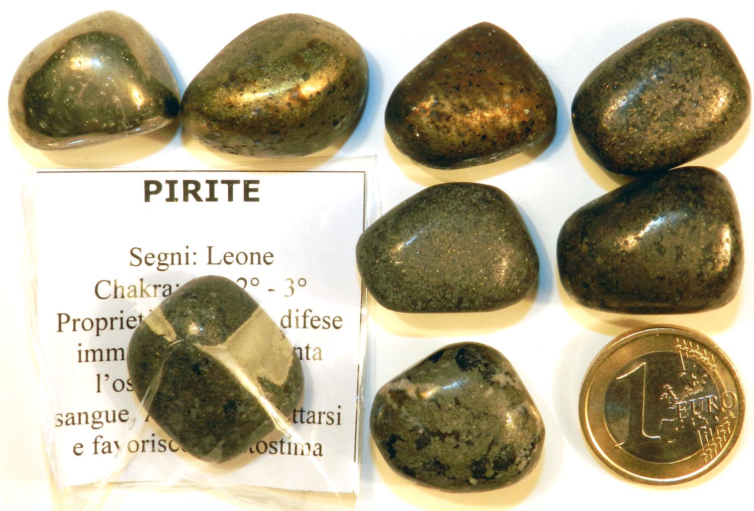 Pirite un Pezzo Medium 12-20 gr - cm 2-2,5 Pietre Dure Burattate Minerali Lavorati Cristalloterapia, confezionato con piccola scheda descrittiva, come in foto.