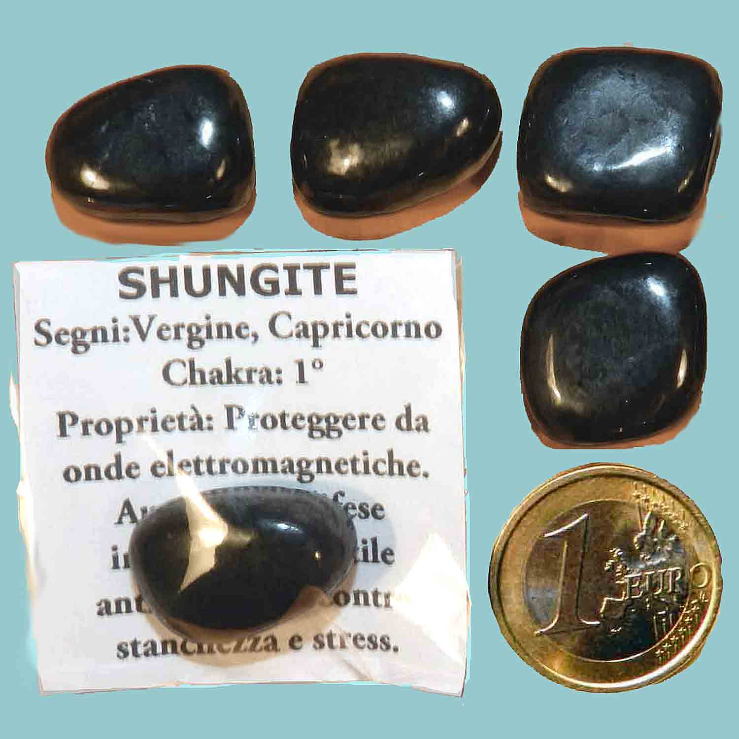 Shungite un Pezzo 5-8 gr - cm 1,5-2,3 Pietre Dure Burattate Minerali Lavorati Cristalloterapia, confezionato con piccola scheda descrittiva, come in foto.