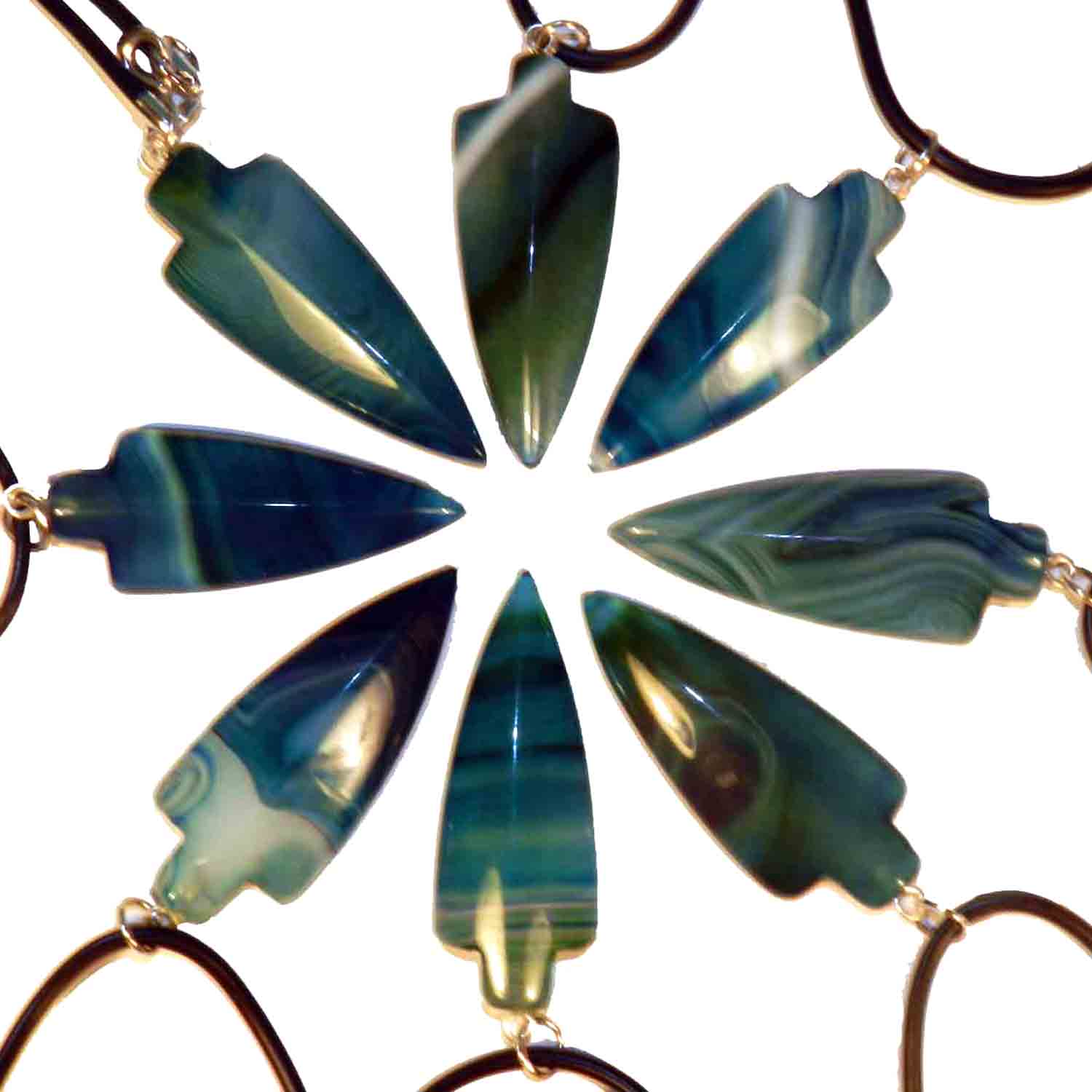 Blue Agate Pendant Arrow-shaped mm 45 x 18 x 6 Costume Jewerly Necklaces Worked Tumbled Stones Minerals for Crystaltherapy. The rubber black string (cm 45) is included with pendant.