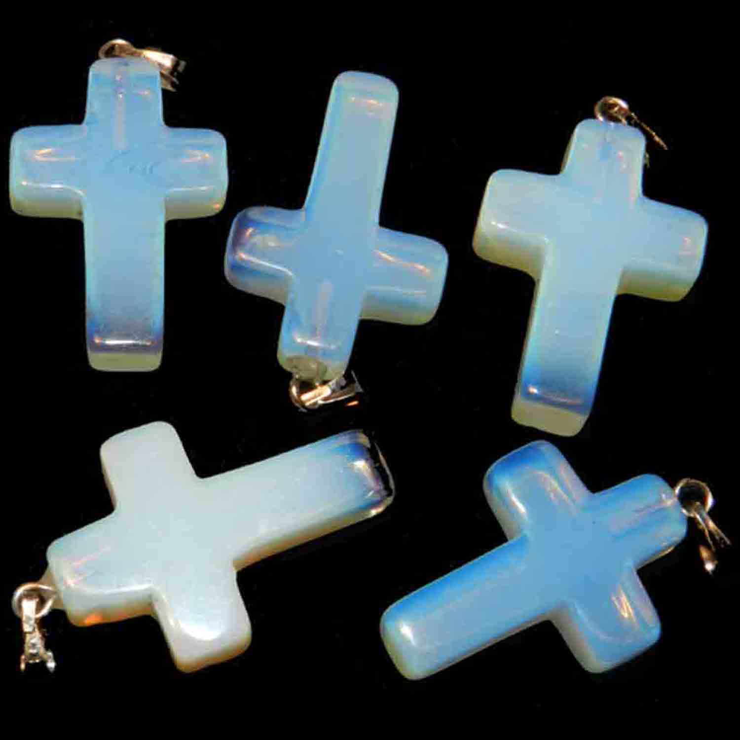 Opalite Cross Pendant Costume Jewerly Necklaces Worked Tumbled Stones Minerals Crystaltherapy