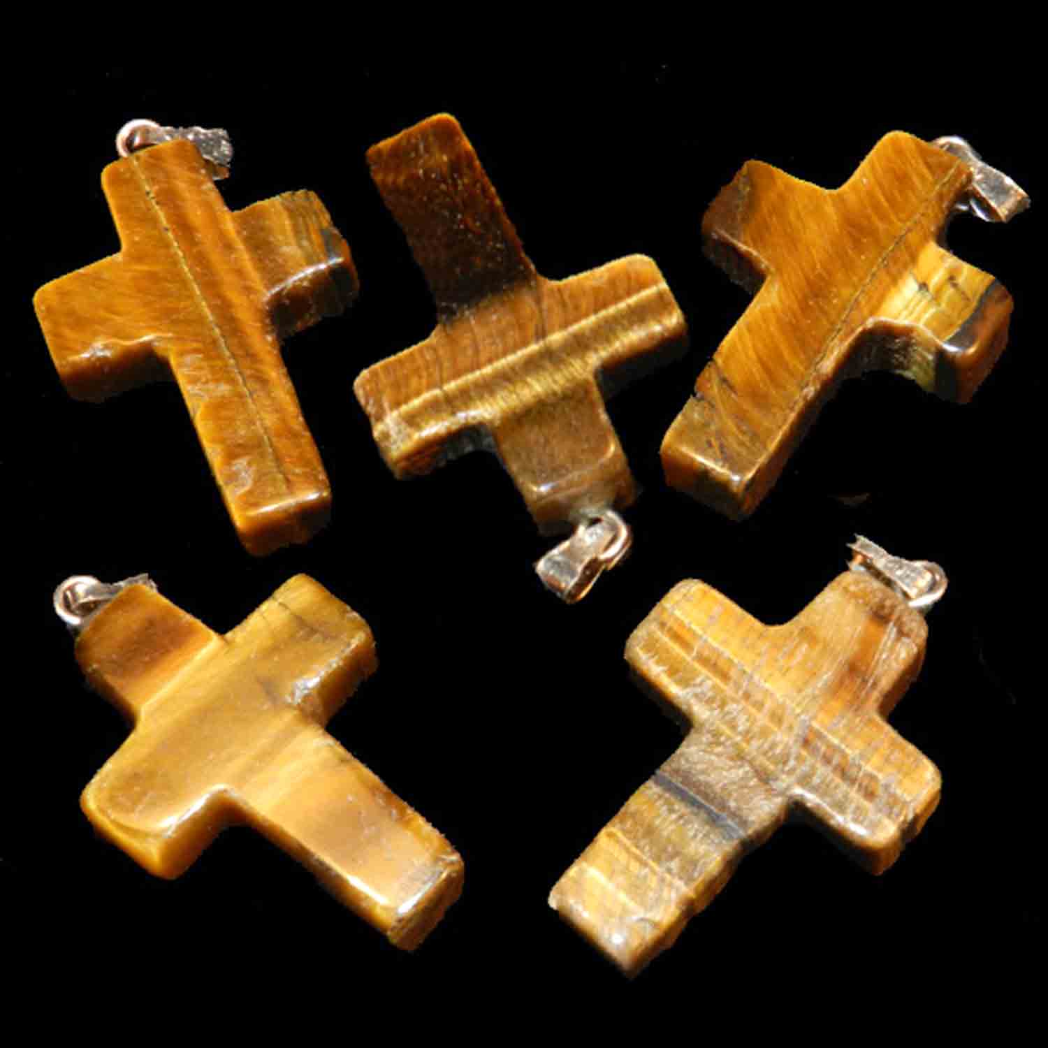 Tiger's Eye Gold Cross-shaped Pendant 3.5-4 gr - about cm 2.5 x 1.8 Costume Jewerly Necklaces Worked Tumbled Stones Minerals for Crystaltherapy. You can add black string of leather, or small chain in silver plated.