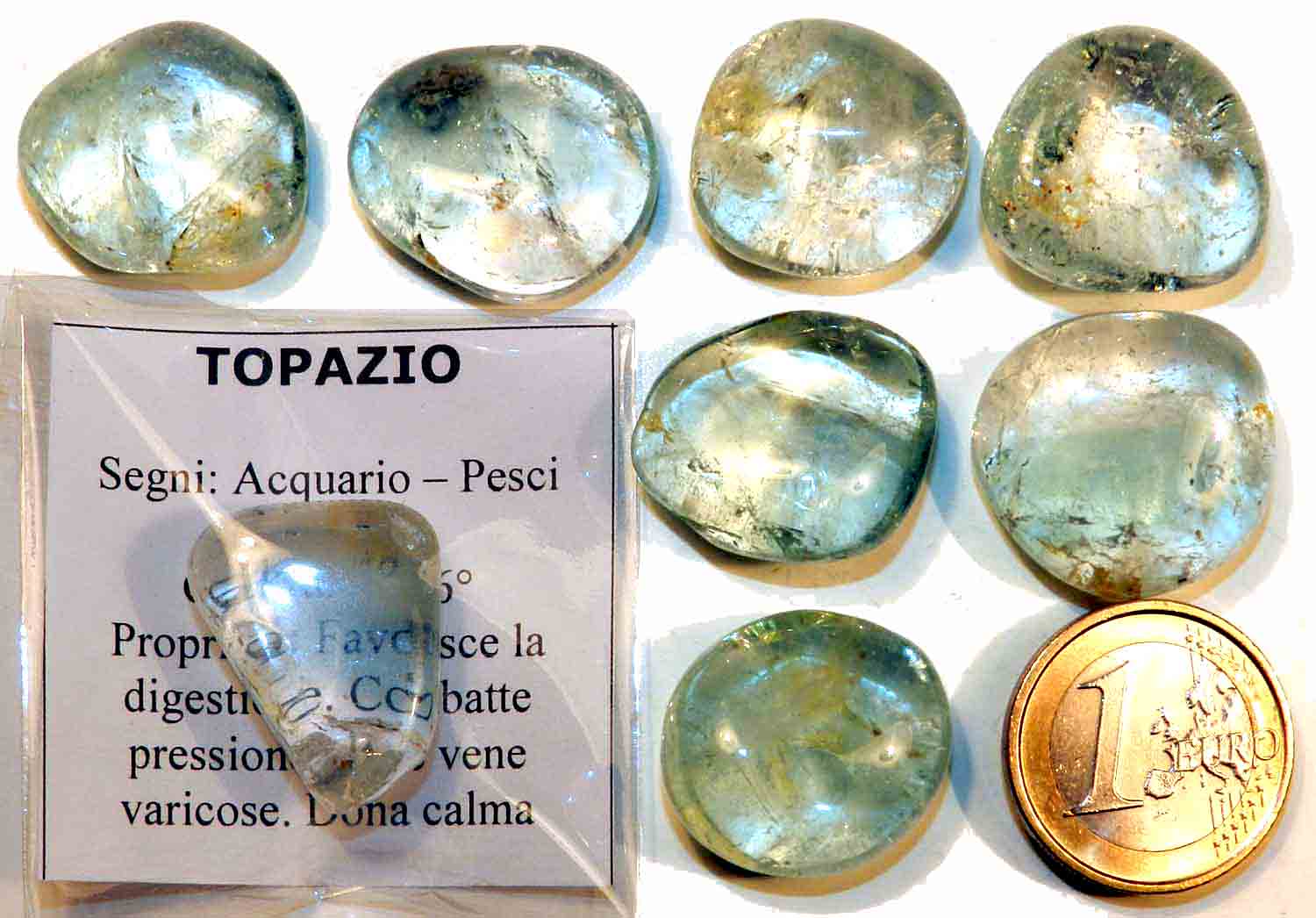 Blue Topaz Extra Quality one Piece 10-13 gr - cm 2-2.5 Tumbled Stones Worked Minerals Crystaltherapy, packaged with a small description card (Italian language), as in the photo.