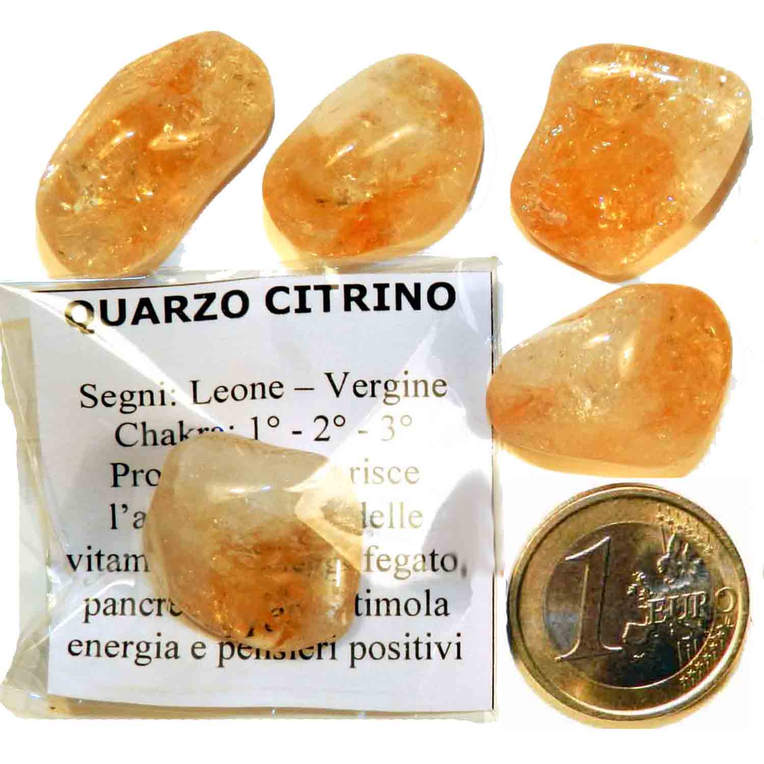 Citrine Quartz one Piece 6-9 gr - cm 2-2.5 Tumbled Stones Worked Minerals Crystaltherapy, packaged with a small description card (Italian language), as in the photo.