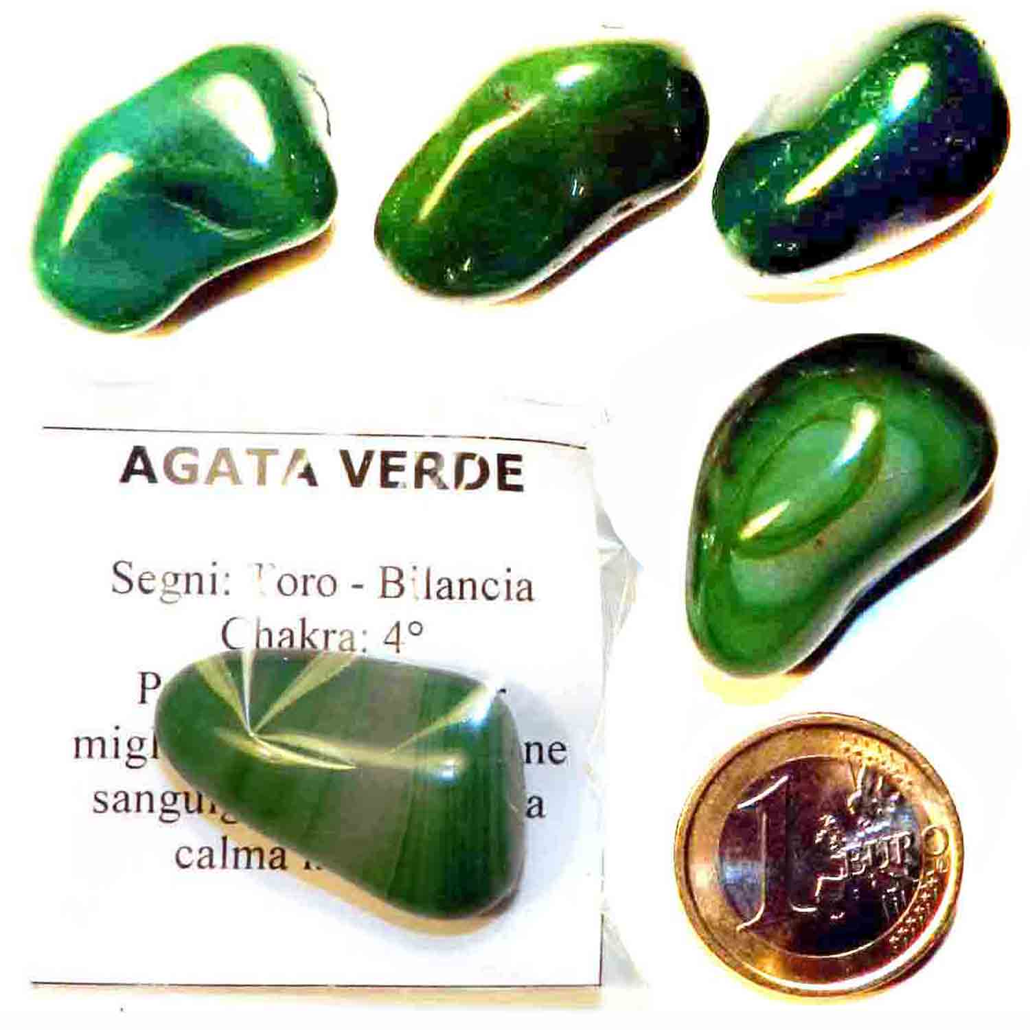 Green Agate one Piece Medium 9-12 gr - cm 2.5-3 Tumbled Stones Worked Minerals Crystaltherapy, packaged with a small description card (Italian language), as in the photo.