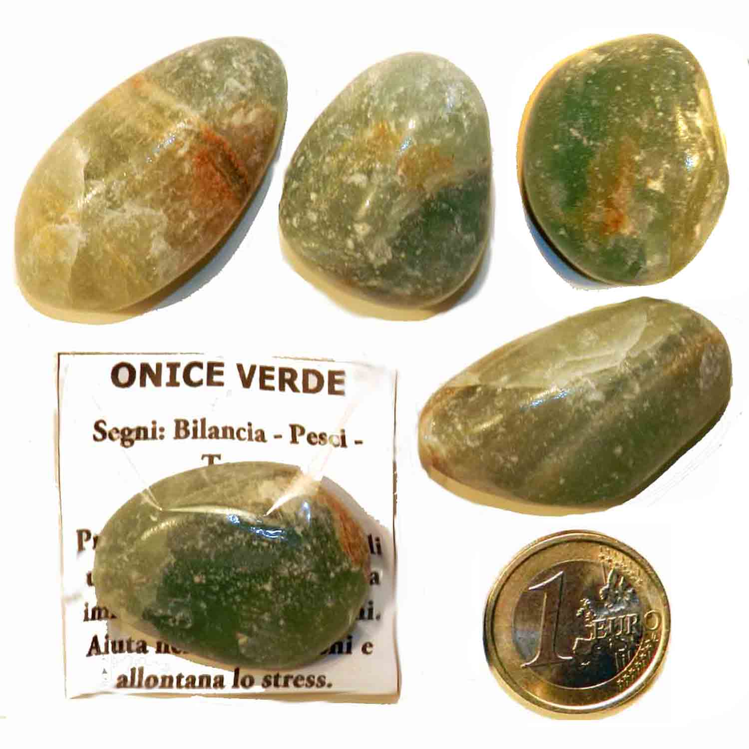 Green Onyx one Piece Large 20-25 gr - cm 2-4 Tumbled Stones Worked Minerals Crystaltherapy, packaged with a small description card (Italian language), as in the photo.