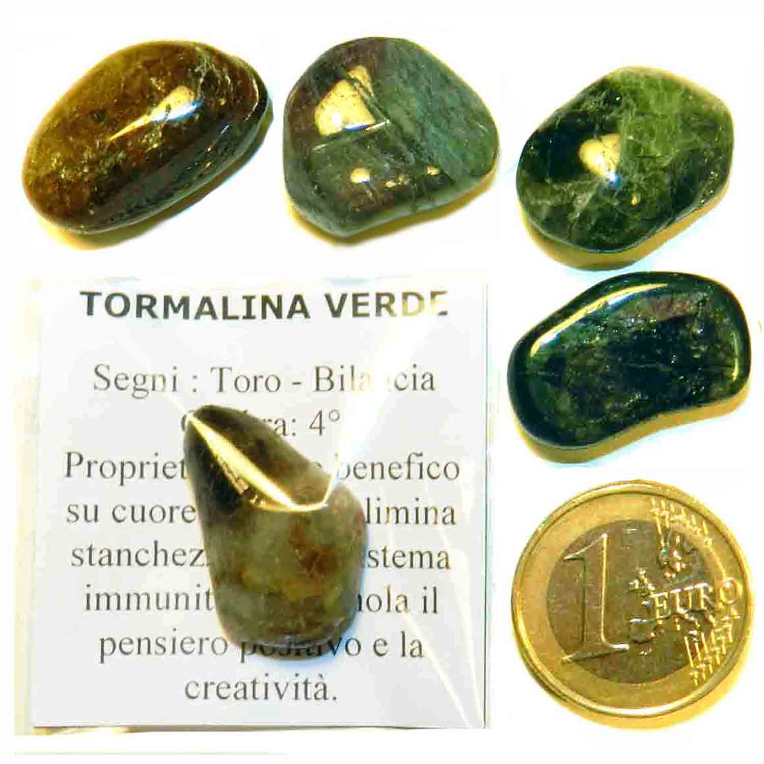 Green Tourmaline one Piece Medium 5-8 gr - cm 1.5-2.5 Tumbled Stones Worked Minerals Crystaltherapy, packaged with a small description card (Italian language), as in the photo.