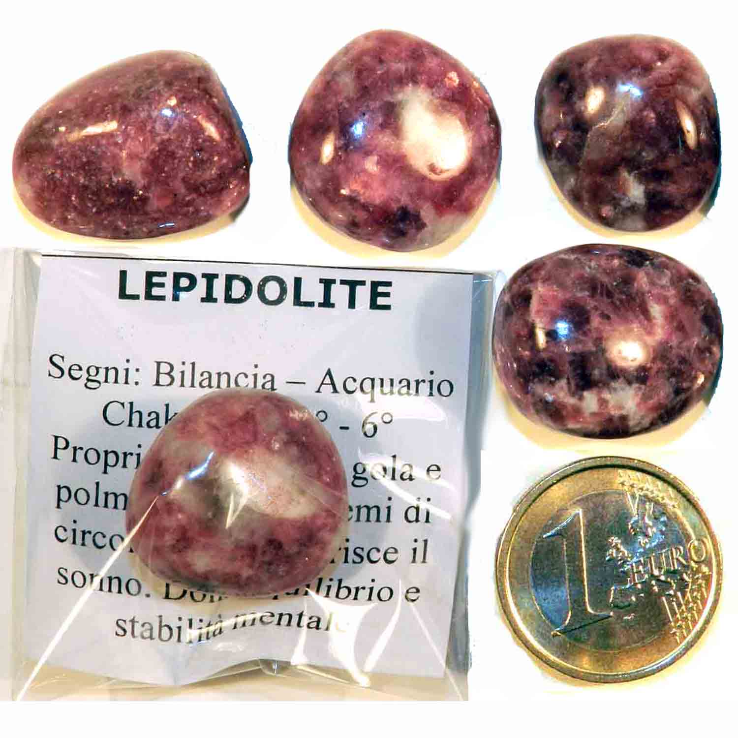 Lepidolite one Piece 10-12 gr - cm 2-2.5 Tumbled Stones Worked Minerals Crystaltherapy, packaged with a small description card (Italian language), as in the photo.
