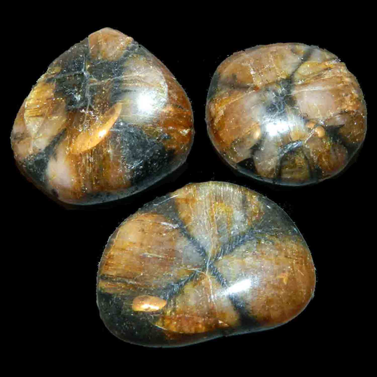 Chiastolite 50 gr - 2-4 pieces Tumbled Stones Worked Minerals Crystaltherapy. Each stone: 8-25 gr - cm 2-3. It is an andalusite containing thin carbonaceous inclusions or dark clay oriented regularly to take the form of a cross that is formed during the crystallization process. The color varies from yellowish brown to dark green, from the most famous red green. It has a very strong pleochroism, to the point that if rotated, the same gem can appear yellow, green, red. Only a few crystals, very clean are used as gems. In the opaque variety, yellowish gray, shows the typical cross-section. In ancient times was considered to be a highly protective stone, used against the evil eye.