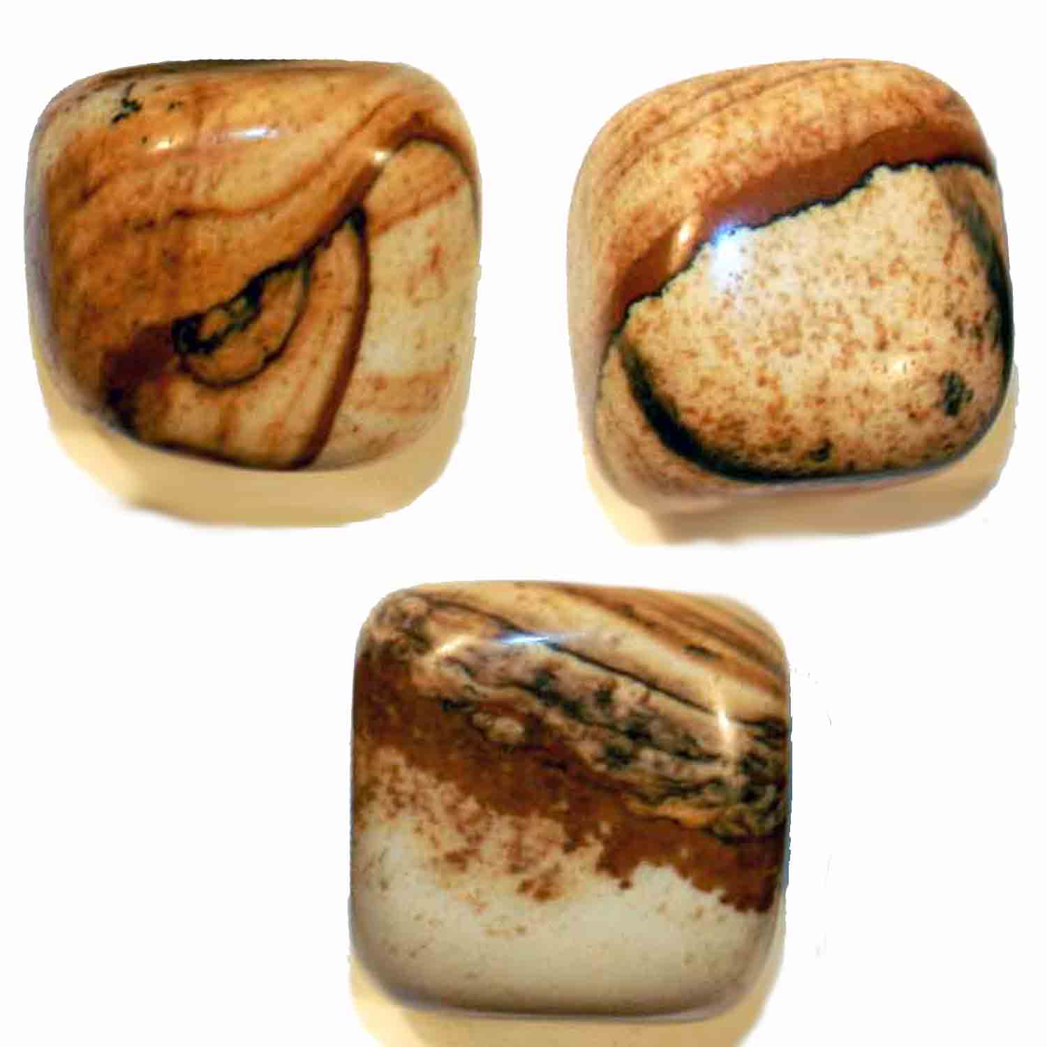 Picture Stone 50 gr - 5-9 pieces Tumbled Stones Worked Minerals Crystaltherapy. Each stone: 6-15 gr - cm 1.5-2. Under the name of figured stones (English Picture Stones in French Pierres Imagées) identify those stones that have beautiful colors and / or beautiful designs, without necessarily contain valuable minerals. The drawings may refer to a recurring pattern or patterns and colors result of completely random events. The design is then enhanced by a craftsman that cuts stone, smooths and shinies it. Le figured stones are found more often among limestone, dolomite, granite, jasper, agates and opals. In Italy the stone is the most famous figured stones is the "Paesina Stone" (or Stone of Florence, or ruiniform stone, or ruin marble) and is a limestone of sedimentary origin. The images often reminiscent of the stone desert landscapes, mountains or ruins. It is assumed that the P. Paesina was already known to the Romans. In Italy, the P. Paesina is situated in north-central Apennines (Liguria, Emilia Romagna, Toscana, Lazio), but the most beautiful location in the hills around Florence. In the picture stones, through the cracks of the mineral, have settled oxides of iron and manganese which, thanks to water, are the cause of the figures that have come to form. The average age of these stones is around 50 million years. In Crystaltherapy it is believed that all figured stones stimulate creativity and imagination, the relationship with nature and with their roots, in addition to all the same features of figured stones, it is thought to protect home and family, and is equipped energy accommodation; the P. Paesina has the Moon as dominant Star, and the water as element.